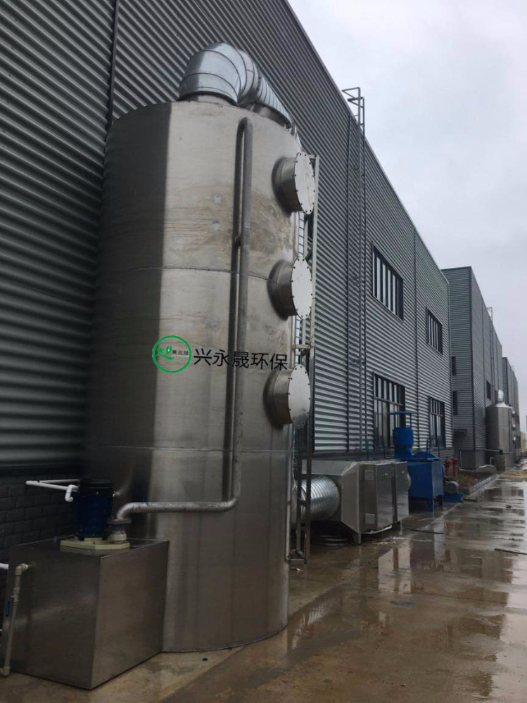 廢氣經風管進入洗滌塔進行預過濾后,進入UV光解廢氣凈化器進行第二次過濾,最后進入活性炭吸附后排出干凈的空氣達標排放。